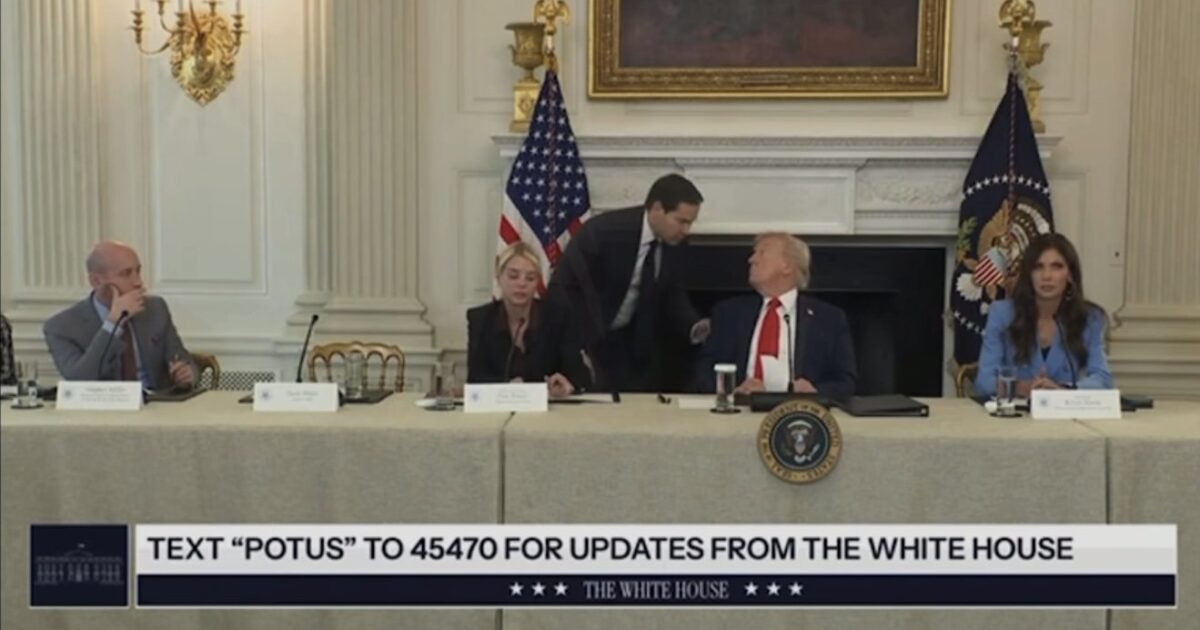 During a roundtable event earlier on Wednesday, Secretary of State Marco Rubio arrived mid-event, and he passed a note to President Trump, which read, “Very close. We need you to approve a Truth Social post soon so you can announce deal first.”