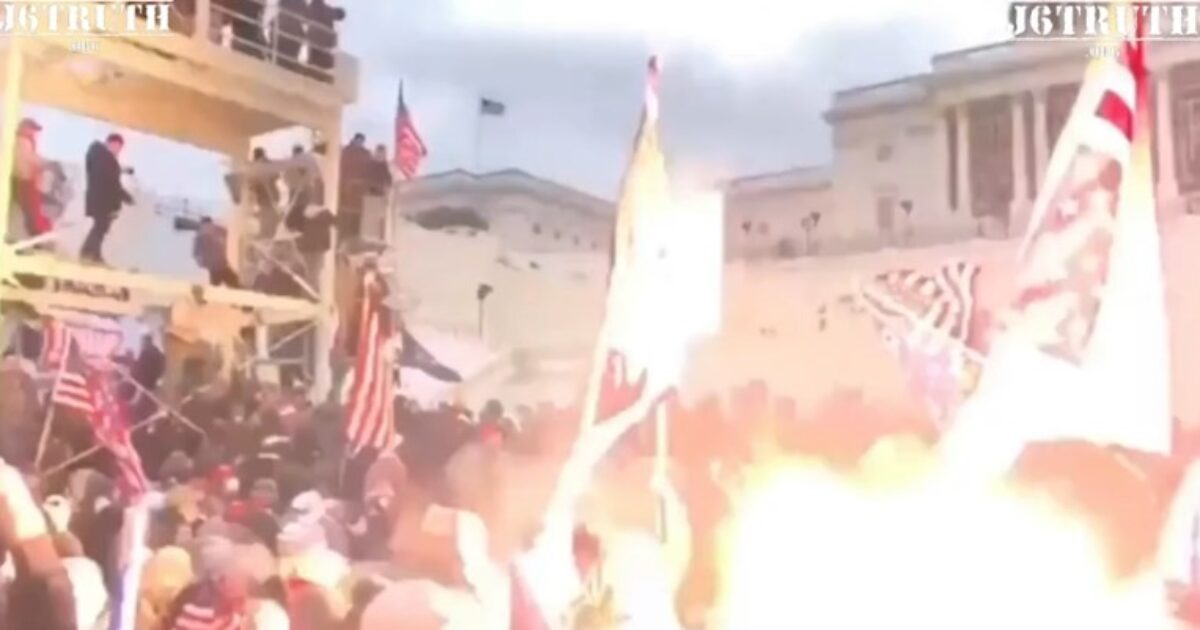 Capitol Police fire exploding flash grenades on innocent protesters on January 6, 2021.