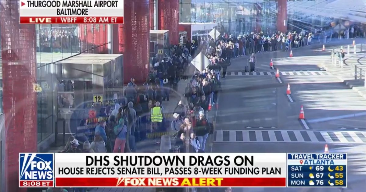 The post Travelers Line Up on Sidewalk Outside Terminal in Freezing Temps at Baltimore Airport as Democrats Block Funding For TSA (VIDEO) appeared first on The Gateway Pundit.